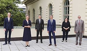 Bild 8: Die Vortragenden bei der Jubiläumsveranstaltung v.l.n.r..: Gerhard Fürmetz, Leiter Abt. II, Dr. Elisabeth Weinberger, Abt. I, Dr. Thomas Paringer, Leiter Abt. V, Dr. Bernhard Grau, Direktor des Hauptstaatsarchivs, Dr. Martina Haggenmüller, Leiterin Abt. IV, Dr. Gerhard Immler, Leiter Abt. I und III. Foto: Elisabeth Miletic, Bayerisches Hauptstaatsarchiv