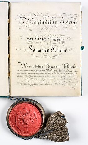 Bild 2: Die Bayerische Verfassung von 1818 wurde von König Max I. Joseph erlassen. Sie galt bis zum Ende der bayerischen Monarchie 1918 (BayHStA, Bayerischer Landtag 10295).