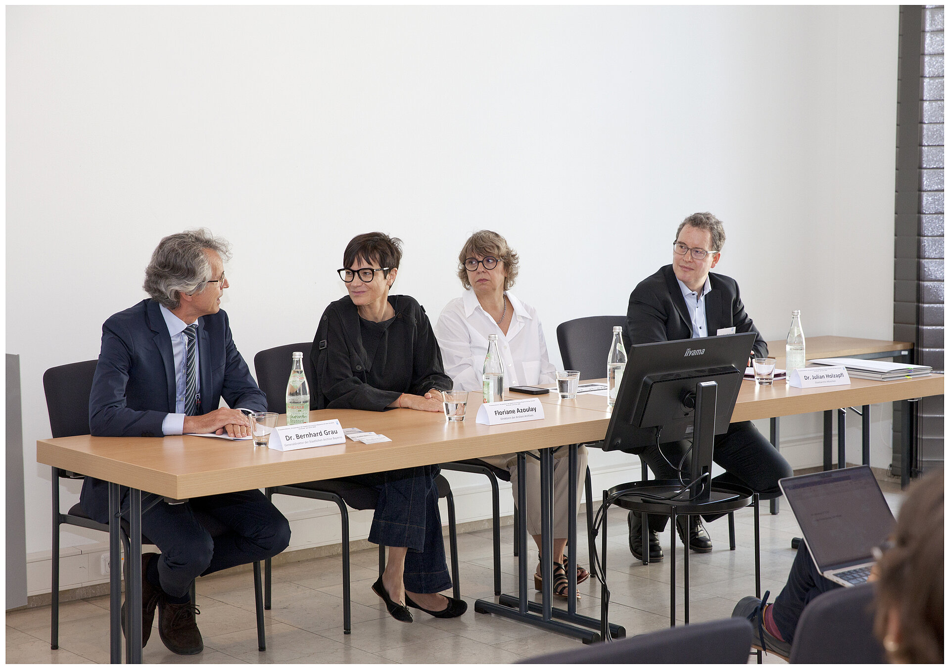 BU 1 v.l.n.r.: Dr. Julian Holzapfl, Leiter des Staatsarchivs München; Floriane Azoulay, Direktorin der Arolsen Archives, International Center on Nazi Persecution; Dr. Anke Münster, Arolsen Archives, International Center on Nazi Persecution, Head of Public Relations/ Projektleitung; Dr. Bernhard Grau, Generaldirektor der Staatlichen Archive Bayerns