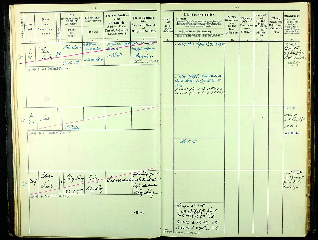 Offiziere wurden in die Kriegsranglisten des bayerischen Heeres eingetragen. Zusätzlich wurde ein Offizierspersonalakt angelegt, der neben den Grunddaten noch weitere Angaben enthält, beispielsweise zum Werdegang oder zu Beförderungen.