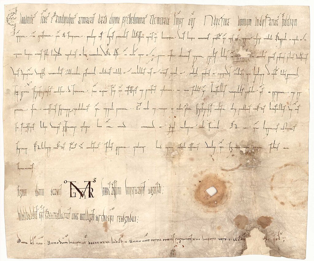 Wichtig für eine Stadt, ein Land oder eine Region ist die Ersterwähnung – eine Art „Geburtsurkunde“. Für Österreich liegt diese Ersterwähnung in München im Bayerischen Hauptstaatsarchiv. Warum? In der Urkunde aus dem Jahr 996 steht nicht das Land „Österreich“ im Zentrum, es taucht eher zufällig auf. Der Bischof von Freising erhält von Kaiser Otto III. Land geschenkt, das „in der im Volksmund Ostarrichi genannten Region“ (lateinisch: regione vulgari vocabulo Ostarrichi) liegt. Die Urkunde sicherte also der Freisinger Kirche Rechte zu und lag daher im Archiv des Hochstifts Freising. Dieses Archiv wurde nach der Aufhebung des Hochstiftes 1802 in das Archiv des Kurfürstentums Bayern übernommen. Wie das Archiv des Hochstifts Freising gelangten zahlreiche kirchliche Urkundenbestände im Zuge der Säkularisation – also der Aufhebung kirchlicher Herrschaften – in den Besitz des Kurfürstentums bzw. Königreichs Bayern.