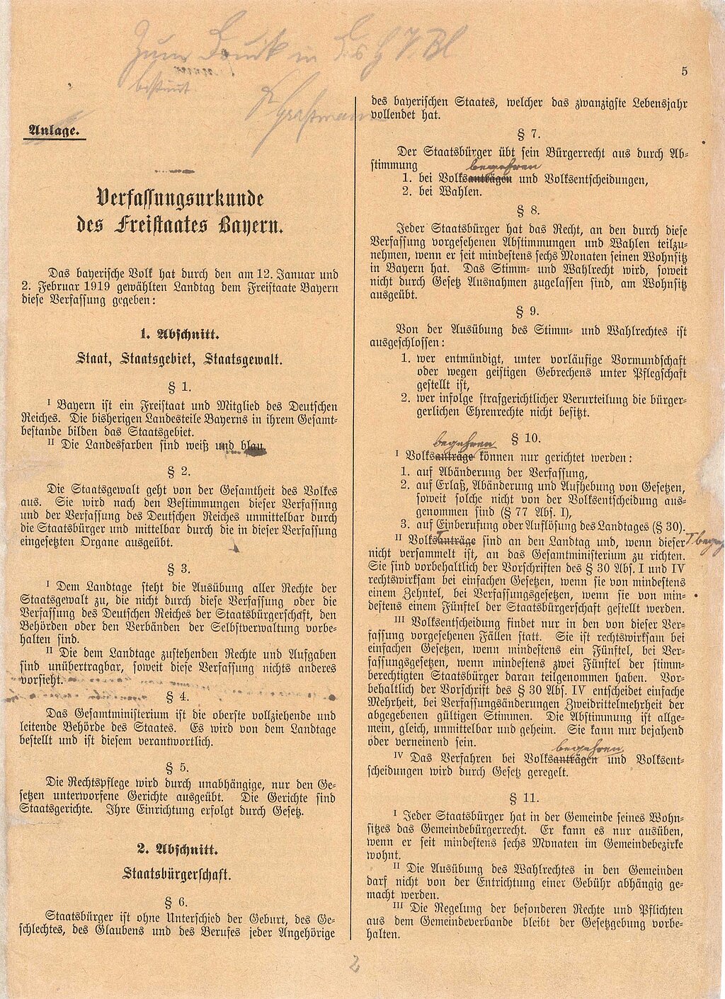 Bayerisches Hauptstaatsarchiv, MA 102010/I (Bamberger Verfassung, 1919).