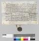 Urfehde des Ulrich Nochart von Stertzelbach für Symon zu Bappenham, Richserbmarschall, dessen Vettern und Erben sowie die Bruderschaften der Schneider und der Schützen wegen des Gefängnisses, das er erlitten hat, weil er seine den Bruderschaften verpfändeten Güter auch anderweitig noch verpfändet hat. (in dieser Sache ist er durch seinen Sohn und Michel, Wirt zu Aleßham, verglichen worden).- Siegler: Karl Segkendorff zu Stopfenham.- Siegelbittzeugen: Thomas Nochart, Pauls Weiler zu Bappenham, Hans Sighart, Hans Bader von Aleßham. - |