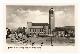 Postkarte "Gablonz a. N. Neue kath. Kirche am Dr. Fischerplatz", Herz-Jesu-Kirche mit Rüdigerdenkmal |