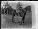 Unbekannte Gegend [Litauen/Weißrussland/Ukraine?]: Offizier mit Schirmmütze auf einem Rappen auf einem unbefestigten Platz, im Hintergrund Gehölz |