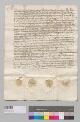 Die Verwaltungskommissare der Landschaft des Oberlands im Fürstentum Bayern quittieren den vier verordneten Landsteurern des Rentamts Burghausen, darunter auch Abt Martin von Seeon, die korrekte Abrechnung der Steuereinnahmen für das Jahr 1587. |