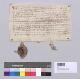 Konrad ("Chunrat") Gundloch, Bürger zu Bamberg, vergleicht sich mit Walther, Abt des Klosters Michelsberg zu Bamberg, wegen des Reutzehnten ("neuer rut zehen") zu Albach (? "Obernaltpach") und den daraus resultierenden Abgaben ("akkergelt") an den Obleier des Klosters. Siegelbitte an Walther, Dekan des Stifts St. Gangolf zu Bamberg ("techant zu Teuerstat"), und Dietrich ("Dietreich") Gundloch, Bruder des Ausstellers. Zeugen: Konrad, Propst zu St. Getreu, Dietrich von Wiesenthau ("Wisentauer"), Pfründner ("spitaler"), Dietrich Marschalk, Obleier, Fritz Zollner ("Zolner"), Herman Zollner und Breunlin Usemer "des sampbach eiden". - S 1 = Walther, Dekan des Stifts St. Gangolf, S 2 = A, S 3 = Dietrich Gundloch