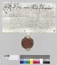 Fürstbischof Marquard zu Eichstätt belehnt den den eichstättischen Erbschenken, Oberforst- und Jägermeister sowie Pfleger zu Tütting und Raittenbuch, Rudolph Wilibaldt v. Eyb zu Dettelsau als Träger für Johann Wilhelm v. Zocha, Landkomtur der Ballei Franken sowie Komtur zu Ellingen und Nürnberg, mit dem dritten Teil der Zehnten zu Stopffenheimb und den Zehnten aus einem Hof und einem Gütlein zu Bernthal, welche das Deutsche Haus zu Ellingen von der Familie Gotzmann gekauft hat. - Siegler: Aussteller. |