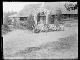 Unbekannte Ortschaft [Litauen/Weißrussland/Ukraine?]: reetgedecktes Holzhaus mit Jägerzaun, Veranda und Empfangsbogen aus Birkenholz |