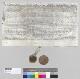 Die Eheleute Hans und Margareta Bopp verkaufen dem Deutschen Haus zu Ellingen (Komtur und zugleich Landkomtur der Ballei Franken ist Johann Conrad Schutzsperg genannt Mülchling) einen Zins von jährlich drei Gulden aus ihrer Tavern und Wirtschaft zu Hettingen. - Siegler: Volprecht Weyß, Sekretär der Ballei Franken in Ellingen. |