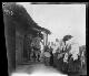 Enthält: Keim am Eingang der Ortskommandantur vor einer Schar einheimischer Frauen in weißen Kopftüchern |