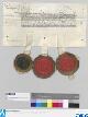 Kurfürsten, Fürsten und Stände, auf dem Reichstag zu Augsburg versammelt, bestätigen Bürgermeistern und Rat der Stadt Nürnberg den Empfang von 2000 fl. rhein. Vorlehens "zu abfertigung der botschafft, so wie zu der koniglichen wirde von Franckenreich verordnet", die bis kommendes Osterfest wieder zurückbezahlt werden sollen. - Siegler: Erzbischof Bertholt von Mainz, Kurfürst Friedrich von Sachsen, Erzbischof Ernst von Magdeburg. |