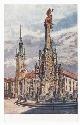 Künstlerpostkarte nach einem Gemälde von Prof. J. Havlicek vom Rathaus und der Dreifaltigkeitssäule in Olmütz |