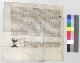 Erzbischof Johannes von Salzburg, geborener Legat des Apostol. Stuhles, den der vor diesem erschienene Bischof Nicodemus von Freising und das Domkapitel Freising in ihrem Streit um das Korrektionsrecht der Freisinger Kanoniker als ihren Kompromissar u. Schiedsrichter erwählten, stellt den beiden Parteien nach Entgegennahme der Propositionsartikel für ihre Beweisführung den Tag des hl. Georg als Termin; Signet des Notars Thomas Herlinger von Wels, Kleriker der Passauer Kirche |