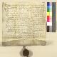 Gerichtsbrief des Jorg von Stralnfels, Richter zu Herspruck über Gerichtsurteil in der Klage des Haintz Korn von Geresdorff (= Gersdorf ?) gegen Enderes Puechner daselbst wegen Beleidung, wodurch die Vollmacht des als Vertreter des Beklagten erschienen Chuntz Ernst als ungenügend erklärt wurde. Die Urkunde über dieses Urteil wurde auf Bitten des Vertreters des Beklagten zum Zweck der Appelation an den Herzog Jorgen von Nidern- und Obern-Bayern ausgestellt. - Urteiler: Herman Messerer, - Bürgermeister, Fritz Stainl, Jorg Perer, Herman Puechell, Niclas Schal, Ulrich Kaesmaer, Ulrich Artzgraber, Hanns Pesler, Cüntz Scheffel.