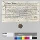 Hans Witzstatt von Wertheim gibt dem Hauskomtur und Spitalverwalter Melchior Dermo des Alten Spitals zu Nürnberg Reversbrief wegen einer dort mit Zustimmung des Landkomturs der Ballei Franken sowie Komtur zu Ellingen und Nürnberg, Hainrich v. Babenhausen, erworbenen armen Pfründe. - Siegler: Philips Bernbeckh, Genannter und im größeren Rat zu Nürnberg. |