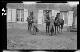 2 Pferdeburschen mit 3 Pferden vor der "Gravelotter Käse [Fabrik]" in Gravelotte (Dep. Moselle, Frankreich) |