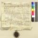 Der Offizialrichter des Bamberger Domdekans Dr. Hertnid vom Stein entscheidet in einem Streit zwischen Margaretha, Witwe des Albert Taufersdorffer, jetzt Frau des Johann Wattenhofer, und Johann Koppitz, Pfarrer zu Grebern, wegen 2 Halber Teile des Zehnten zu Wallersprunn (Walkersbrunn) an der Langenleytten, im Wunnersgraben und in Mertinslohe, daß der Zehent der Margaretha, Witwe des A. Kopitz, zu stehe. Der Zehent wurde in Anspruch genommen für die der "beata Maria" geweihte Kirche in Grebern, welche von der Mutterkirche in Ristelbach im Jahre 1438 durch Bischof Anton von Bamberg getrennt und zur Pfarrei erhoben wurde. Den Zehnten besaßen vorher: Heintz und Peters Krafft, Heintz Coler, die Brüder Heintz u. Eberhard Greffenberger, Heinrich Koler, Seboldt u. Pewrlin und seine Frau Barbara, Tochter des Heinrich Koler, Albert u. Margaretha Taucherßdorffer. - Zitiert ist eine Urkunde des Gotfrid und Margaretha Hohennloch, 1438. - Zeugen: Johannes Molitor, Anwalt der Domdechanei zu Bamberg, Johannes Meister, "de appido Hallis" [Hallstadt?], Notar zu Halle. - Unterschrift des Michael Braun, Notars.
