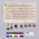 Lutz und Wolfram Schott ("die Schotten"), Söhne des Heinrich ("Heinreich") Schott von Schottenstein ("vom Stein") d. J., reversieren das ihnen vom Abt des Klosters Michelsberg zu Bamberg in Absprache mit dem Obleier verliehene, dem Obleiamt zugehörige Drittel des klostereigenen Gutes zu Melkendorf für 13 Jahre und danach 14 Jahre. Bürgen: Heinrich Kammermeister ("Camermeister"), Verwandter ("swager") von Lutz und Wolfram Schott, Dietrich Ochs ("Dytereich Ohs"), Heinrich von Lisberg ("Liesperger"), Heinrich Zollner ("Zolner") "in dem Zingenwerde" und Hans Esel. - S 1 = A 1, S 2 = A 2, S 3 = Kammermeister, Heinrich, S 4 = Ochs, Dietrich, S 5 = Lisberg, Heinrich von, S 6 = Zollner, Heinrich, S 7 = Esel, Hans