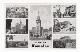 Postkarte "Gruss aus Komotau", Siechenhaus mit Park, Jesuitenkirche St. Ignatius, Panorama, Deutschordensplatz, Turnhalle, Mädchenbürgerschule |