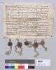 Andres von Seinsheim ("Saunsheim") und seine Ehefrau Katherein verkaufen Güter zu Eggenbach ("Eckerichispach") an Seyfrid von Halle, Chorherr des Stifts St. Jakob zu Bamberg, für einen jährlichen Zins von 15 Pfund Hellern Zins und 12 Scheffel Korngült für 540 Pfund Heller. Bürgen: Ulrich von Lauffenholz ("Lauffenholtz"), Walther von "Albenberg" (n. ident.), Friedrich ("Friderich") Cratz, Ritter, und Konrad ("Cunrad") Truchseß zu Reichelsdorf ("Reichalstorf"). - S 1 = A 1, S 2 = Walther von Albenberg, S 3 = Friedrich Cratz, S 4 = Ulrich von Laufenholz, S 5 = Konrad Truchseß