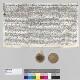 Hans Wildt, Müller, und Maria, seine eheliche Hausfrau, Deutschordens-Untertanen auf der Langkhwaidtmühl, verkaufen an das Deutsche Haus zu Ellingenn eine jährliche Gilt (1 1/2 fl. 9 Kr.) aus der von dort zu Lehen gehenden Langkhwaidtmühle um 33 fl. - Komtur: Johann Conrad Schuczsper genannt Milchling, Statthalter der Ballei Franken, Komtur zu Ellingenn und Nürnberg. - Siegler: Volprecht Weyss, Sekretär zu Ellingenn. |