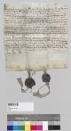 Das Deutsche Haus zu Ellingen verkauft an Gotfrid, Chorherrn zu Spalt, den Hof zu Etenstat, den ihm der derzeitige Komtur Vl[rich] von Hausen übergeben hat, um 57 (Pfund) Heller und räumt dem Käufer auch ein Vorkaufsrecht an den Einkünften daraus, die die in der Urkunde genannten Erträgnisse überschreiten, ein, behält sich daraus jährlich 12 Hühner im Werte von 12 D[enar] vor, welche Leistung der Käufer im Falle der Weiterveräußerung des Gutes mit 2 (Pfund) Heller ablösen muss, und pachtet das Gut von demselben. - Zeugen: Bruder Ludwig, Priester von Rein, Bruder Ph[ilipp], Priester von Meiningen, Bruder Al. Priester von Tegningen, Bruder Symon Priester, Bruder Al. von Tegningen, Heinrich der Zöllner ("Thelonearius"), Ulr[ich] Halpmaier. - Zustimmend: Heinrich von Mezzingen, Deutschordensprovinzial. - Mitsiegler: derselbe. |