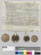 Das Deutsche Haus zu O{e}tingen (Komtur: Wilhelm Haller von Hergern) verkauft mit Zustimmung des Landkomturs Wilhelm v. Neuhausen an das Alte Spital zu Nürnberg (Spitalmeister: Hans von Karssbach) einen jährlichen Zins von 46 fl. 1 ort um 925 fl., die es an Conrat Kecheler für die Veste und andere Güter zu Megesheim weitergegeben hat. - Siegler: das Deutsche Haus zu Oettingen und sein Komtur. |