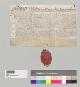 Or., südl. Perg., Siegel in Blechkapsel ohne Deckel, mit eigenhändiger Unterschrift des Notars Bonifatius de Angelis. |