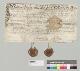 Or., Perg., Wasserflecken, mit zwei Siegeln (Siegel 1 besch.) in Holzkapsel (Deckel fehlen) und mit den Unterschriften der beiden A auf der Plica. |