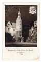 Postkarte "Wallenstein-Gedenkfeier Friedland in Böhmen 1934", Schlosshof in Festbeleuchtung |