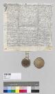 Die Eheleute Georg und Salmonen Schmidtborn verkaufen dem Deutschen Haus zu Ellingen (Komtur und zugleich Landkomtur der Ballei Franken ist Johann Conrad Schutzsperg genannt Mülchling) einen Zins von jährlich einen Gulden aus ihrem Lehengut zu Dorßpronn. - Siegler: Volprecht Weyß, Sekretär der Ballei Franken in Ellingen. |