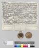 Jacob Newsesser, Bauer auf dem Hof Atzenaich, und Katharina, seine eheliche Hausfrau, verkaufen an das Deutsche Haus zu Ellingenn den ihnen erbrechtsweise überlassenen Hof zu Atzenaich um 250 fl. - Komtur: Heinrich von Bobenhausen, Landkomtur der Deutschordensballei Franken und Komtur zu Ellingenn und Nürnberg. - Siegler: Peter Zwitzermüller, Kastner zu Sandsee. - Siegebittzeugen: Wolff Meinzel, Paul Pfefflein, beide zu Sandsee. - |