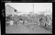 Einheimische mit Kosakenmützen und Pferde auf einem Ortsplatz |