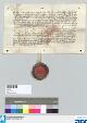 Markgraf Ludwig von Brandenburg usw. verschreibt seinem Getreuen Botsch von Florenz hiermit seine Propstei zu Tramin(e). Er soll hieraus allen Wein, Nutz, Gülte und Dienst nehmen und empfangen und die Propstei mit Bauleuten und Dienern besetzen. Ludwig bekennt, dafür um 396 mrk 2 lb Berner Meraner Münz von ihm in Bozen (Bo{e}tzen) Kost und "phantlos mit beraitem gelt" erhalten zu haben. Dafür soll er so lange den Wein aus der Propstei zu Tranin(e) verrechnen, die Hälfte "nach dem maisten spruch und halben nach dem minnisten spruche", bis die Schuld getilgt ist. Siegler: Markgraf Ludwig von Brandenburg |