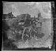 "Baccarat (Dep. Meurthe-et-Moselle, Frankreich)": [Oberleutnant d.R. Strauß] neben einem Wagenkarren stehend bei einer Rast |
