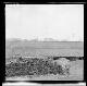 Unbekannte Ortschaft [Nordfrankreich?]: Ziegel- und Backsteinstapel neben Güterwaggons, im Hintergrund der Rand einer Ortschaft |